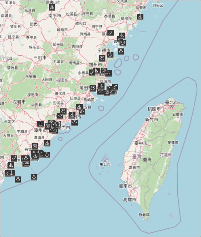 An example of FocalPoints icons indicating recent events in part of China.