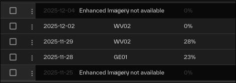 Enhanced Imagery Streaming is a limited release. Enhanced Imagery Streaming is only available for images newer than October 2023. Enhanced Accuracy Streaming coverage (3m CE90 absolute and 1.5m CE90 co-registration) is limited to the Vivid Terrain DTM coverage area.
