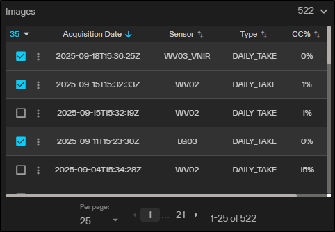 Select Imagery Select the checkbox next to the image(s) you want to add to the project. You can also select anywhere in the image's row.